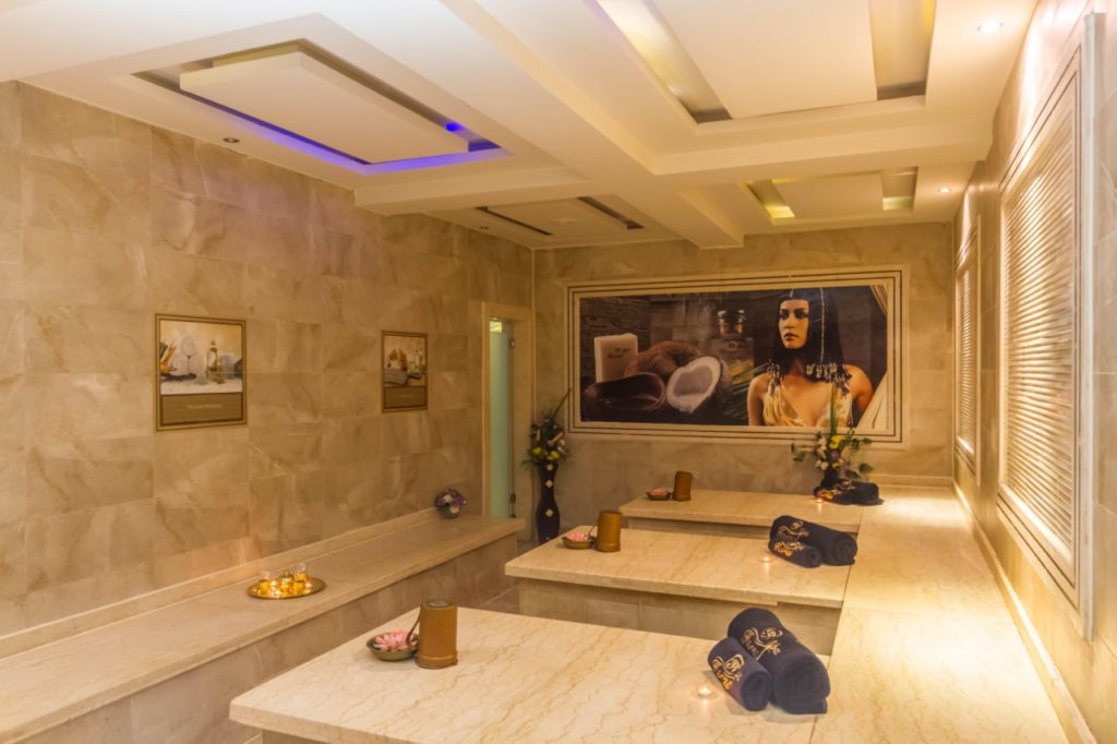 Хаммам включает целый комплекс процедур: сауну, пилинг, массаж. Температура в турецкой бане не очень высока – обычно не больше 80 градусов, а тепло передается телу обильным влажным паром. Вы приятно распариваетесь и расслабляетесь на горячей мраморной плите. Ваше тело становится мягким, податливым, а кожа – эластичной. Вы испытываете истинное наслаждение. Затем делается пилинг, в результате которого эффективно удаляются ороговевшие чешуйки кожи. И, наконец, пенный массаж – пик удовольствия.