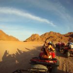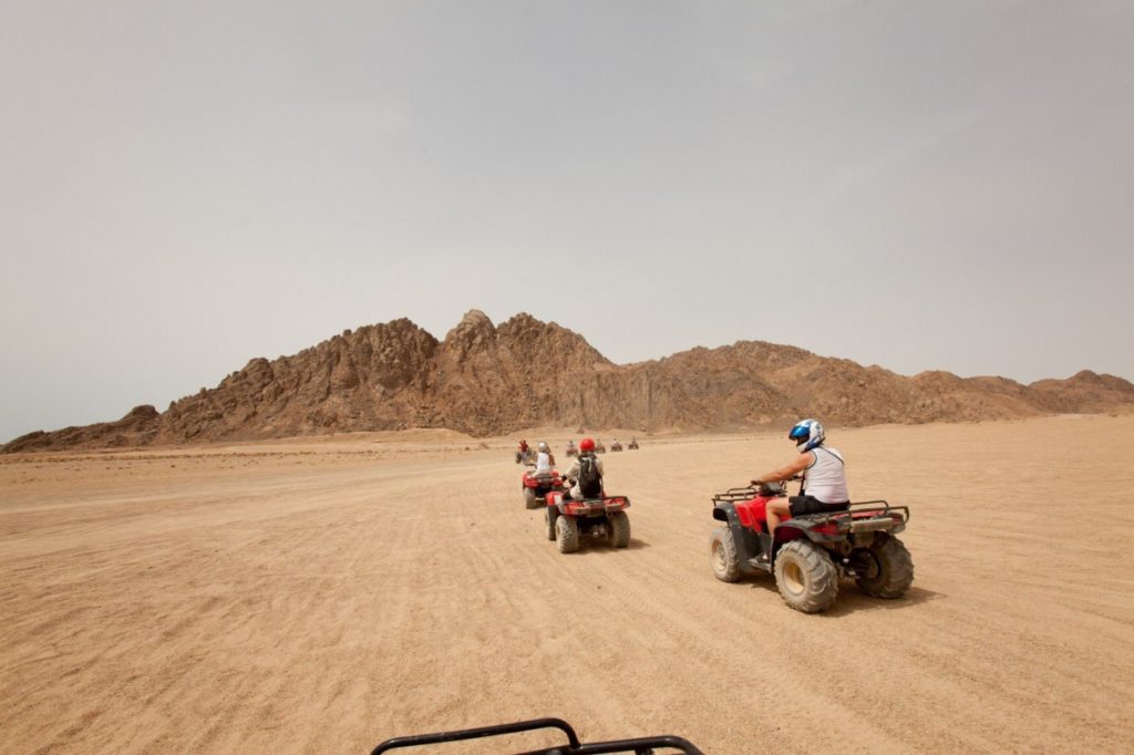 Это увлекательное приключение начнется с поездки на джипе в пустыню. Далее путешествие продолжится на квадроциклах, во время которого вы увидите настоящий мираж и сможете прокатиться с песчаных дюн. Впереди — запоминающая встреча с бедуинами, которые предложат путникам отдохнуть и отведать ароматного чая, катание на квадроциклах, багги (спортивном автомобиле) и верблюдах. В насыщенную программу также включено посещение мини-зоопарка, террариума.
