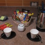 Бесплатный минибар (несколько сортов отличного чая, кофе, молоко для кофе, кофе с молоком, горячий шоколад и другие горячие напитки, сахар, заменитель сахара,джем, чипсы, сухарики, круассаны, шоколад, печенье и тд). Так же в минибар входит питьевая вода, кока-кола, спрайт.