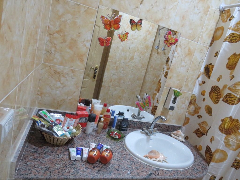В ванне гостям будет предоставлен полный набор банных принадлежностей (зубные щетки, зубная паста, шапочка для душа, ватные палочки, влажные салфетки, шампунь, кондиционер для волос, мыло и т.д.), полотенца-парео.