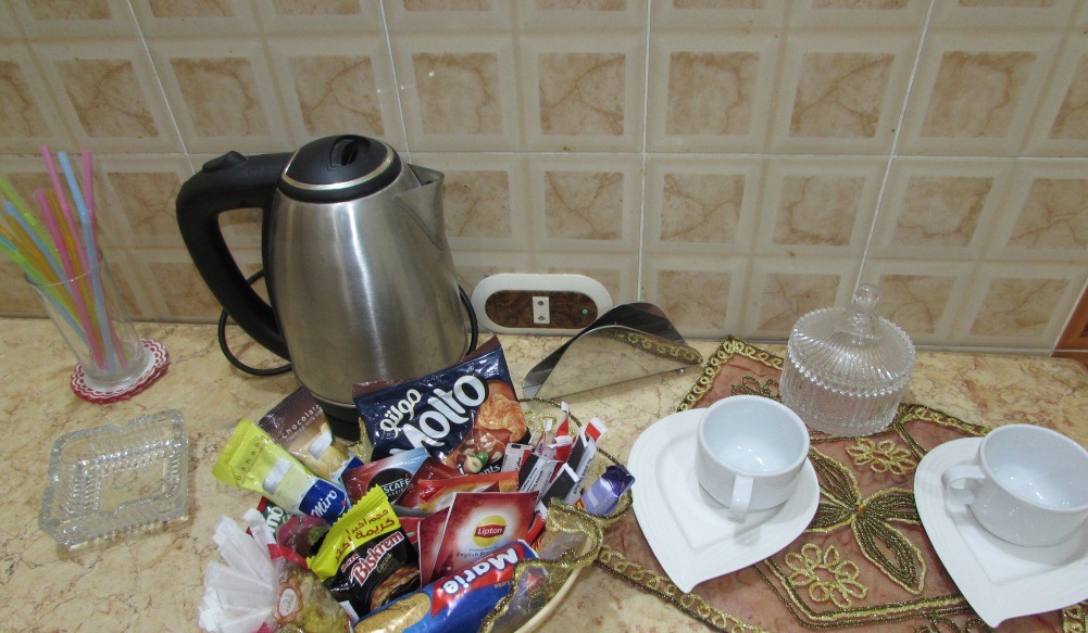 Бесплатный минибар (несколько сортов отличного чая, кофе, молоко для кофе, кофе с молоком, горячий шоколад и другие горячие напитки, сахар, заменитель сахара, круассаны, шоколад, печенье и тд). Так же в минибар входит питьевая вода, кока-кола, спрайт.