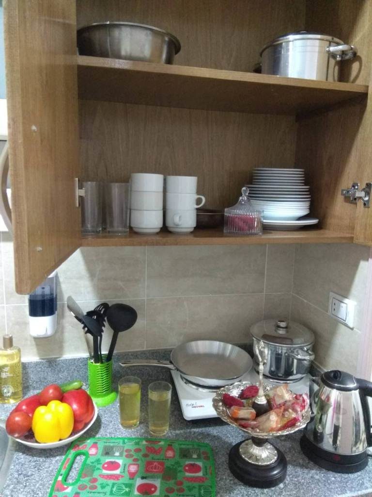 Гостям предлагается прекрасно укомплектованная кухня (полный комплект посуды и столовых приборов на 6 персон, кастрюли, сковороды, салатницы, разделочная доска, кухонный набор, стаканы для воды, фужеры для вина и т.д.