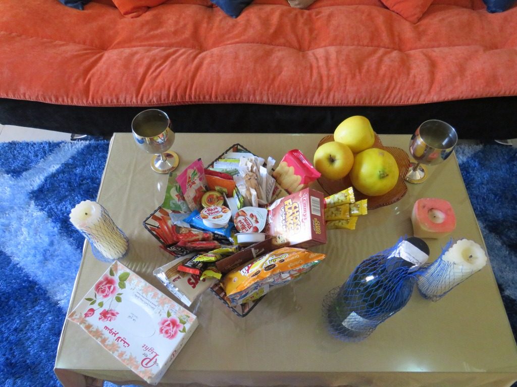 Бесплатный минибар (несколько сортов отличного чая, кофе, молоко для кофе, кофе с молоком, горячий шоколад и другие горячие напитки, сахар, заменитель сахара,джем, чипсы, сухарики, круассаны, шоколад, печенье и тд). Так же в минибар входит питьевая вода, кока-кола, спрайт.
