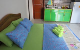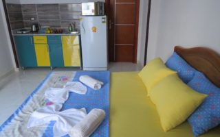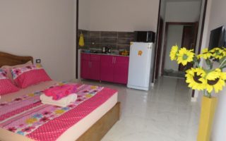 Небольшая квартирка-студия отлично подошла для нашего путешествия с мужем. Так как приезжали не в сезон расстояние до моря не сильно интересовало, но хозяин рассказал нам короткий путь до открытого пляжа. Квартира расположена в новостройке, чистая и теплая. Рядом есть магазинчик с продуктами первой необходимости и кофейня, которая открывается на час позже написанного. В квартире есть много посуды, утюг, стиралка, плитка, телек, кондей.